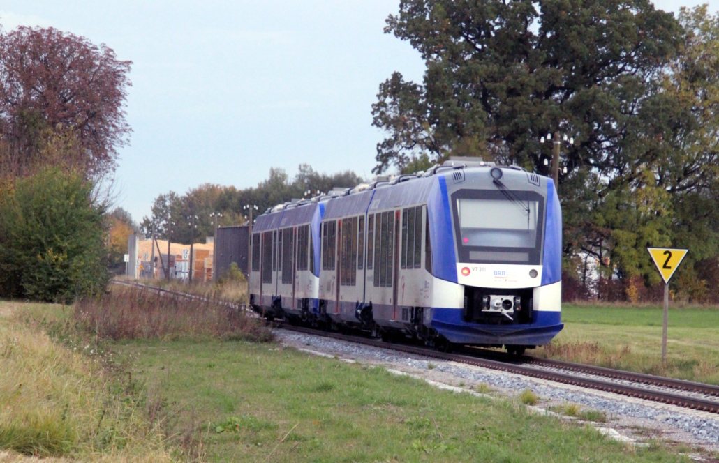 Überführungsfahrt eines BRB-Zuges im Oktober 2025 bei Asch