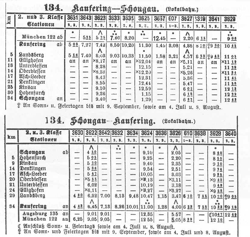 Fahrplan aus dem Jahr 1900. Der Zug von Landsberg nach Schongau war über 90 Minuten unterwegs.